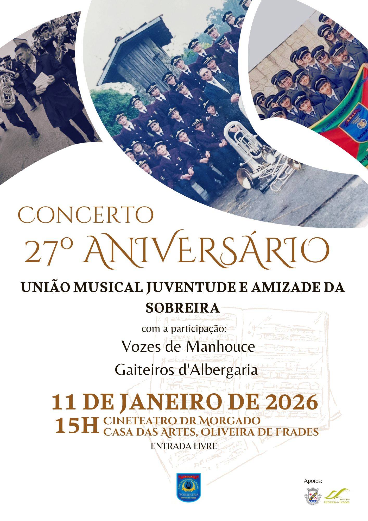 A União Musical Juventude e Amizade da Sobreira (UMJA) assinalou o seu 27.º aniversário com um concerto comemorativo, realizado ontem, dia 11 de janeiro, no Cineteatro Dr. Morgado - Casa das Artes de Oliveira de Frades.